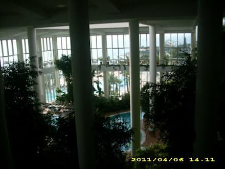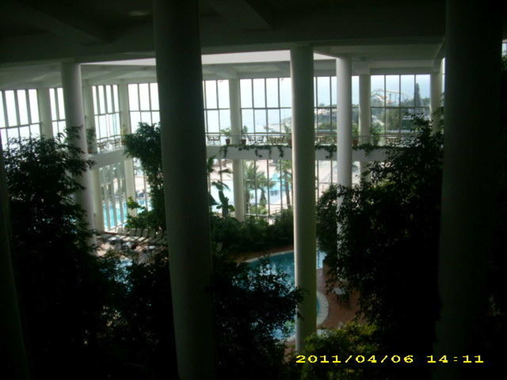 Lobby, in der Mitte ist der Pool