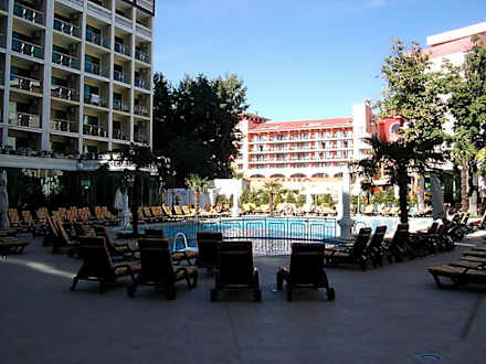 Innenbereich mit Blick zum Pool im Hotel Sol Planeta/Sonnenstrand.
