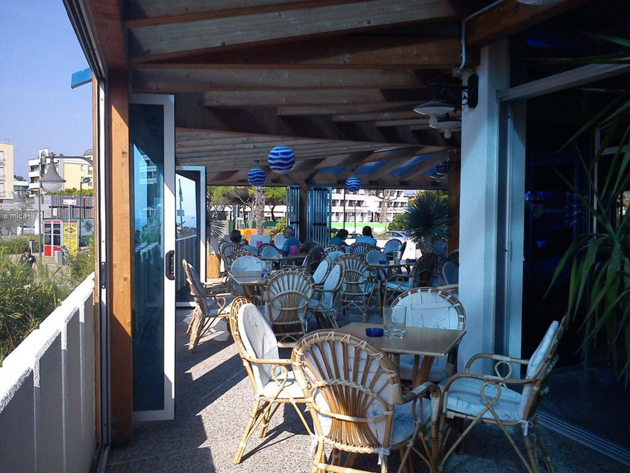 Terrasse mit Sicht auf den Strand