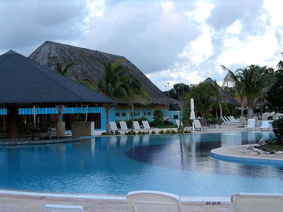 Pool mit Poolbar, dahinter das Fitnesscenter