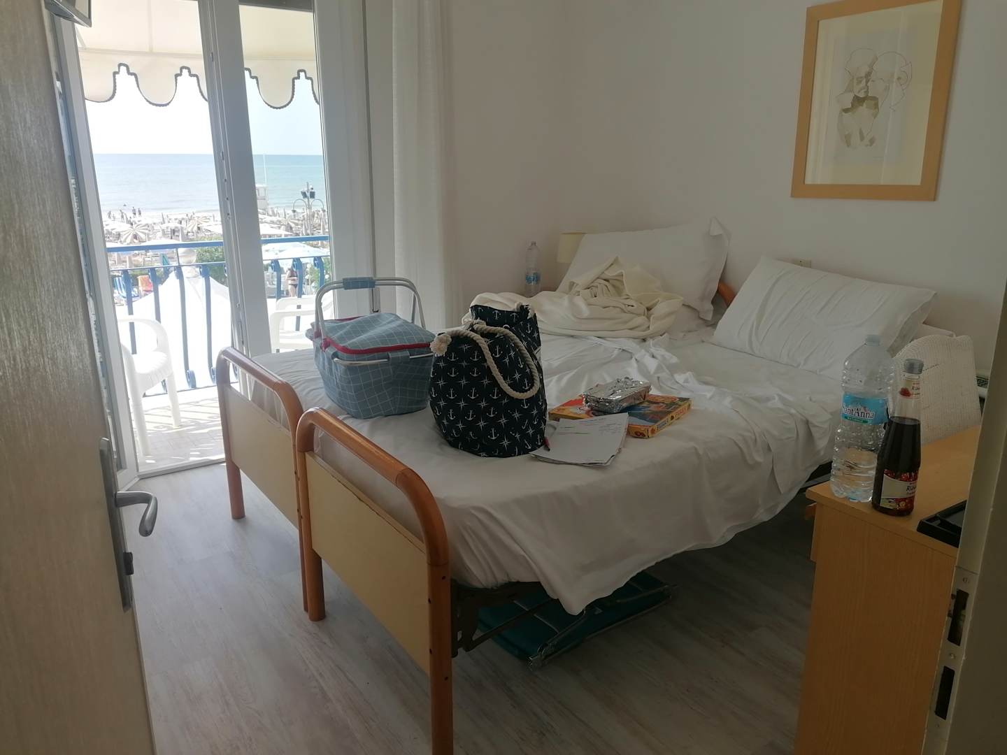 Zimmer 104/ Größe einer Besenkammer. Direktes MEERBLICKZIMMER. Verwahrlostes Zimmer (auch, das darüber 204). Nicht wie auf der Homepage beschrieben.