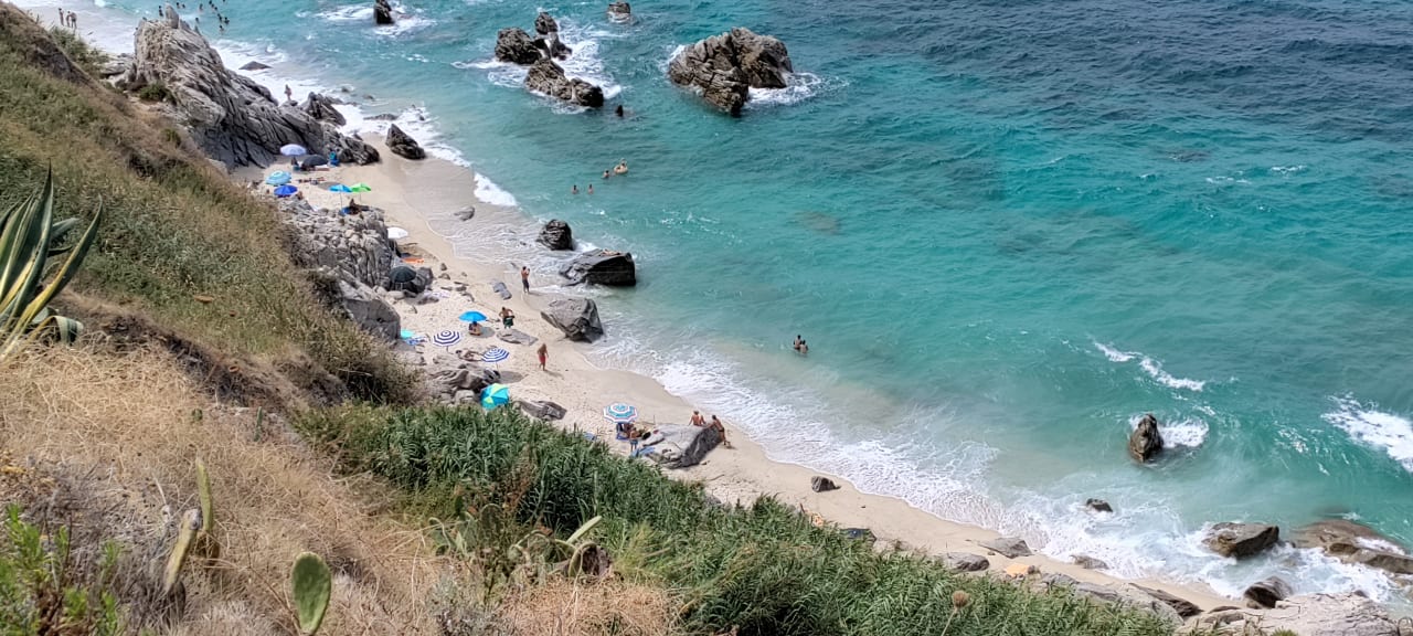 Blick auf die Spiaggia Michelino direkt unterhalb des Hotels über Treppen zu erreichen.