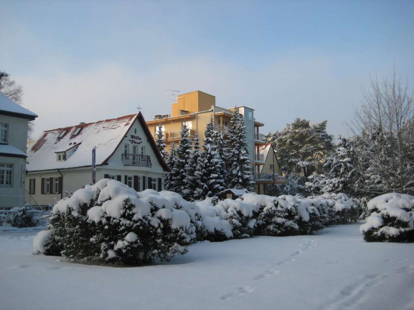Seitenansicht des Hotels, daneben das Cafe Pfau welches sehr zu empfehlen ist