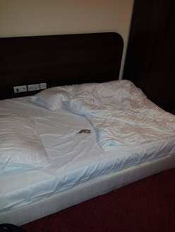 Bett? Zwei Matratzen tun es doch auch.Ausgebautes "Waschhaus". Sowas müsste man der DEHOGA melden.... und das für 75,- Euro die Nacht.