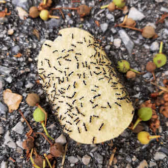 Fallengelassener Stapelchip - eine Delikatesse für griechische Ameisen