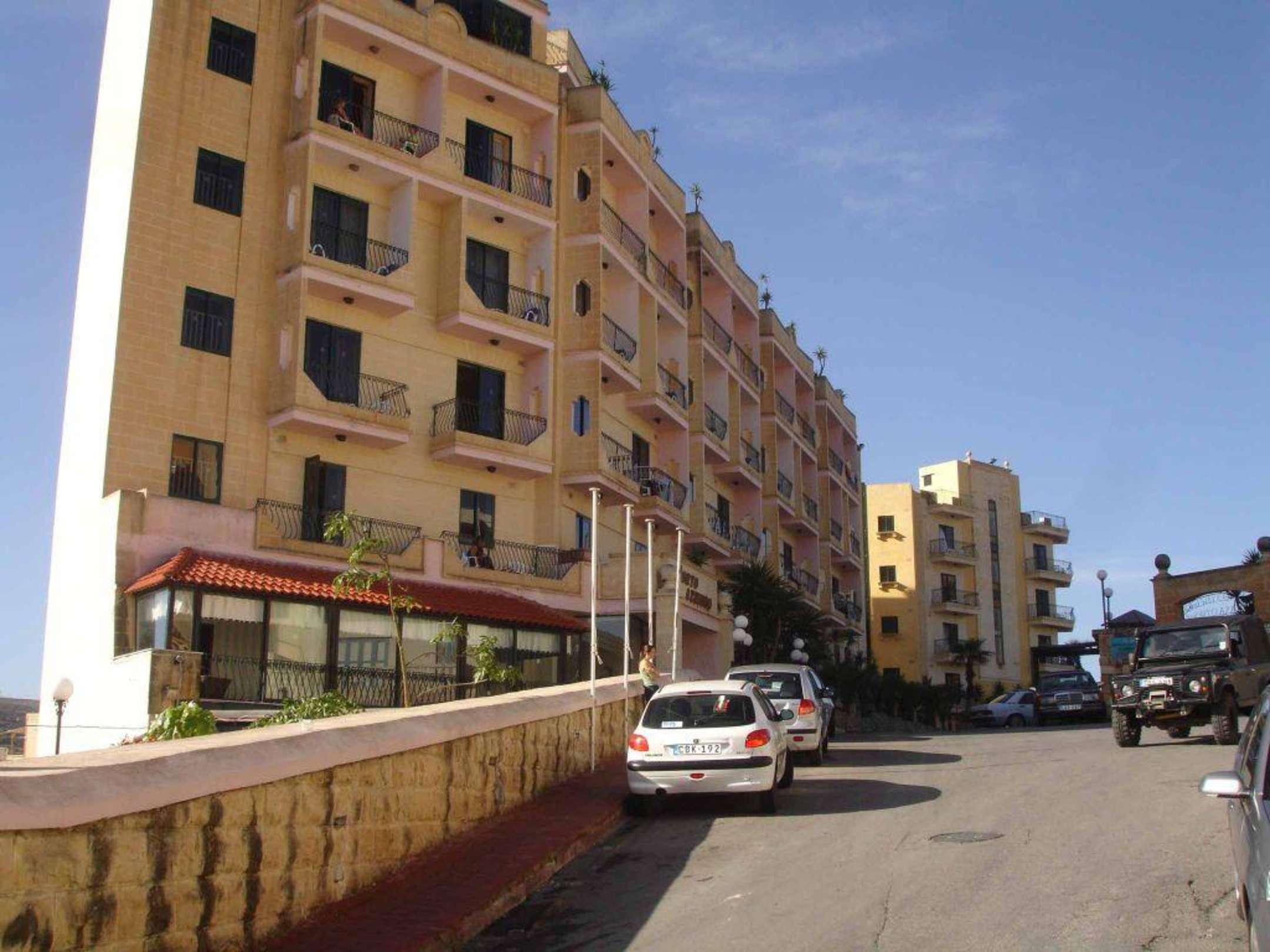 Hotel von vorn links andere Strassenseite ist der Pool