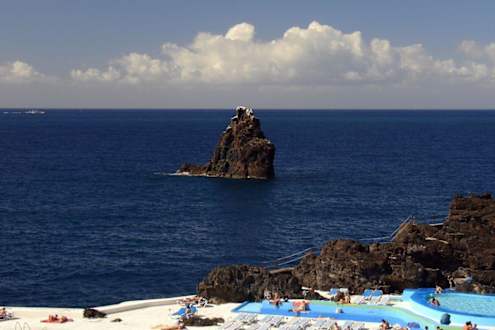 Blick vom Lido (öffentliche Badeanlage vor/unter dem Hotel) auf das Meer an einem klaren Tag