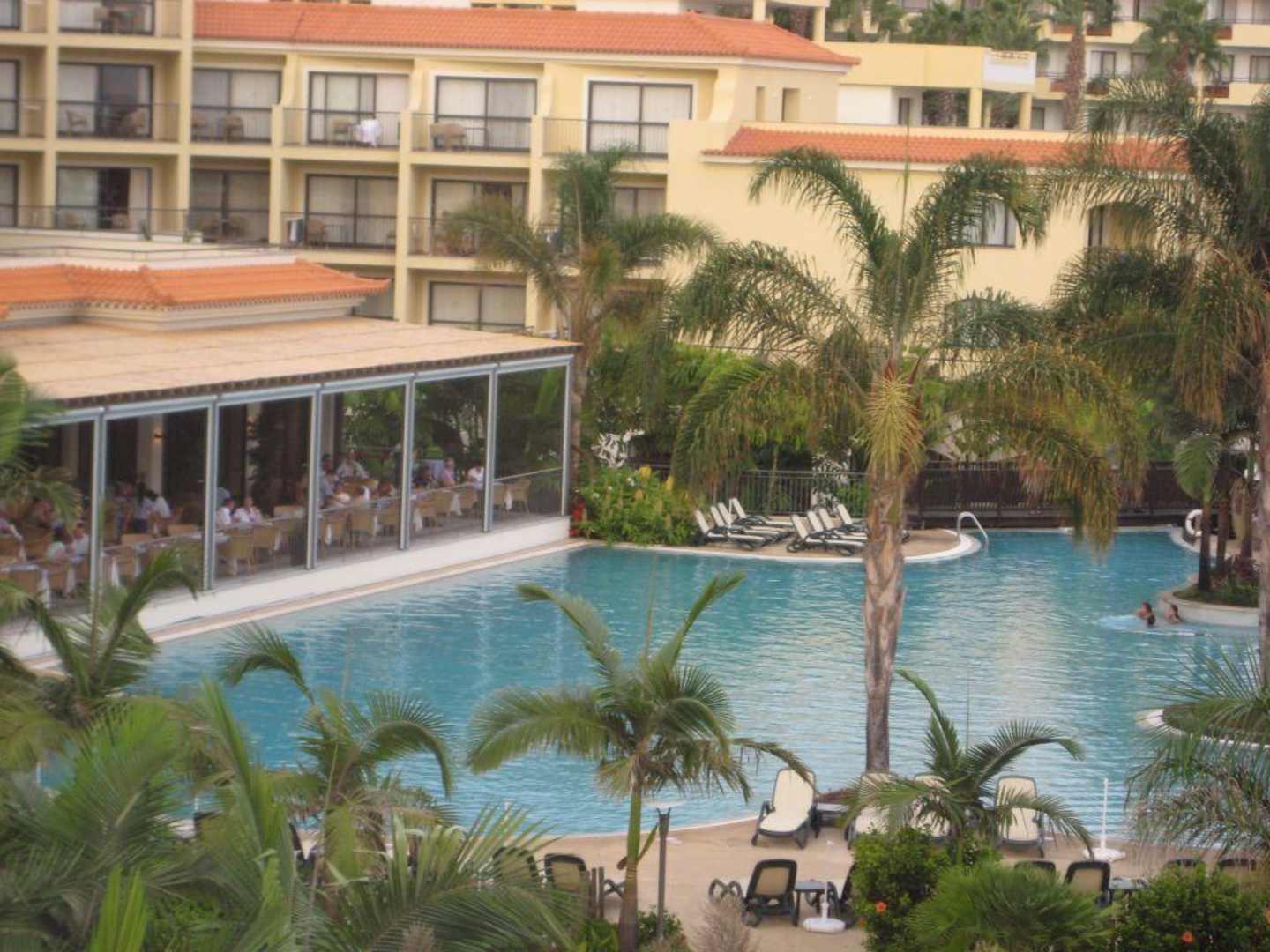 Restaurantterrasse und Hauptpool