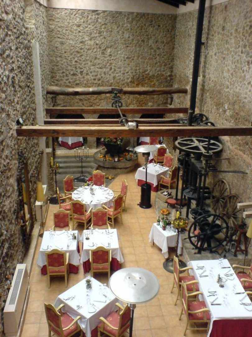 aus einer alten Ölmühle wurde dieses Rstaurant - sehr nett hergerichtet - Teile der Ölmühle stehen als Deko noch da - abends ist es ganz toll bei vielen Kerzen die angemacht werden !