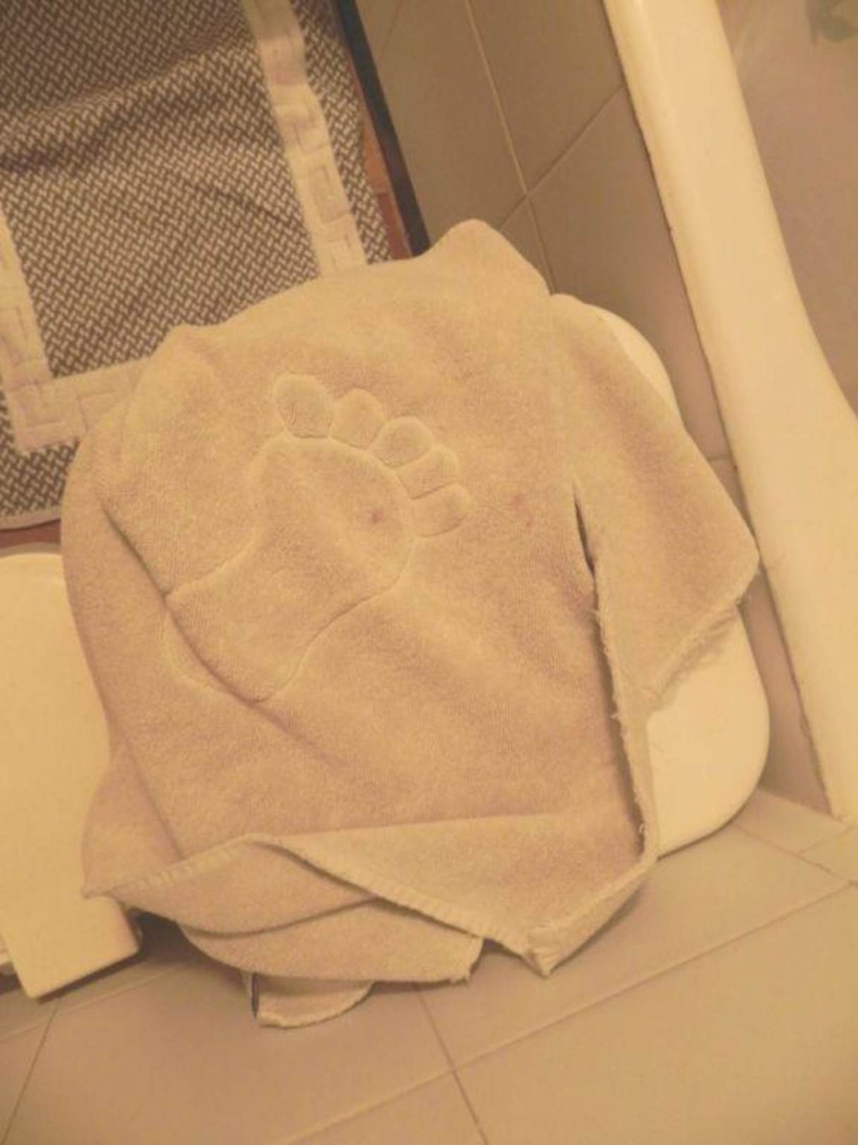 weißes Handtuch auf weißem Hocker