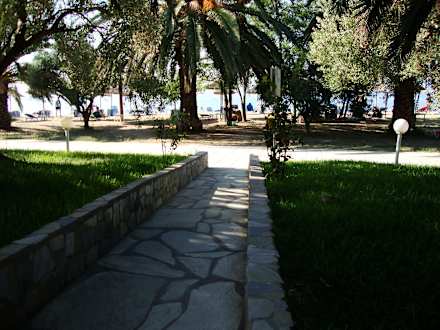 Weg mit schattenspendenden Palmen