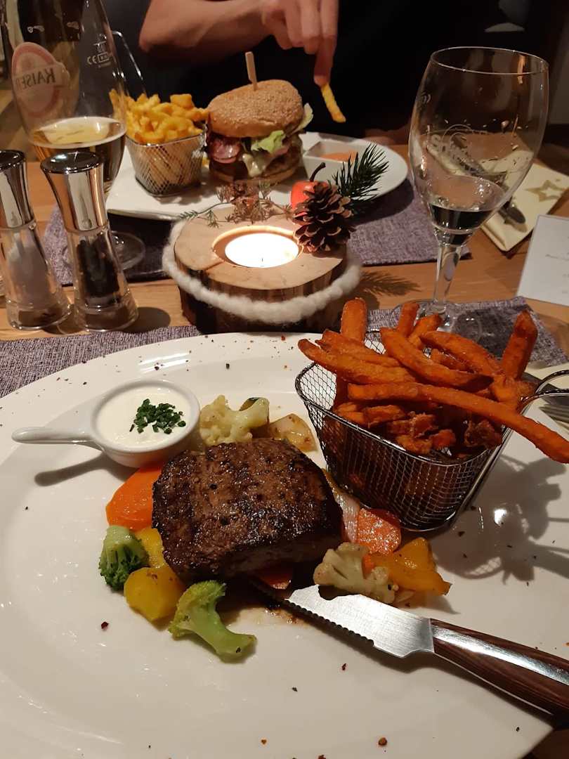 Das "Lady-Steak" mit Süßkartoffelpommes und leckerem Gemüse