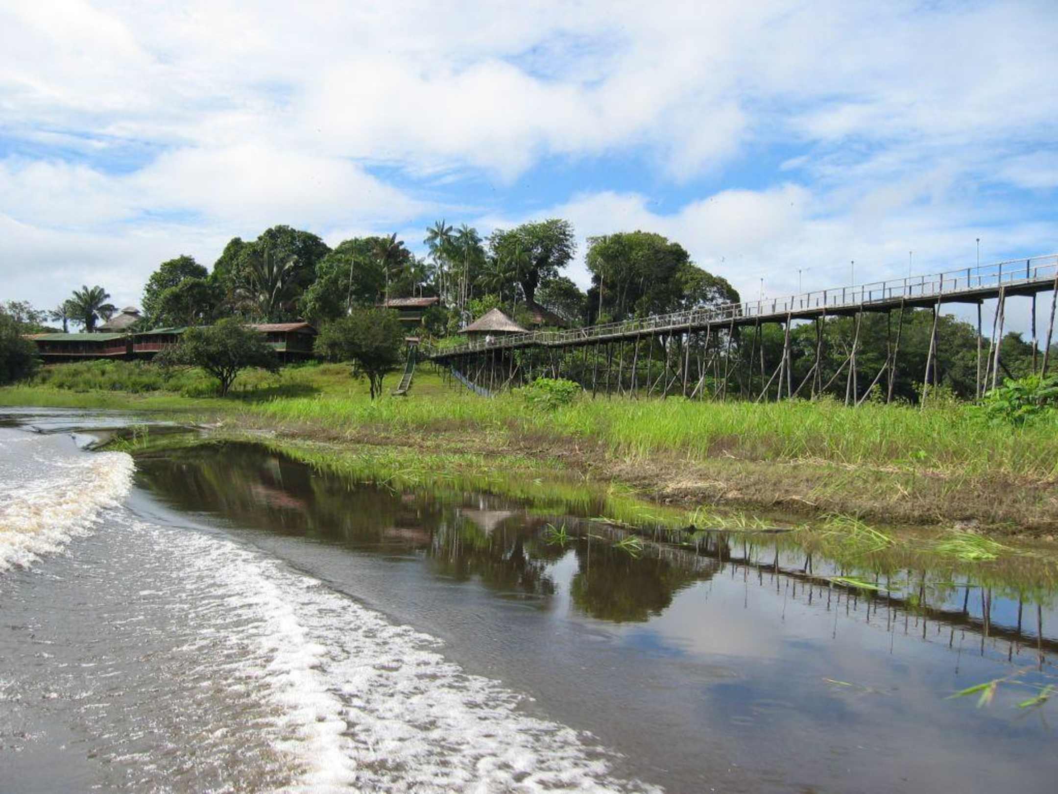 Der hohe Steg rechts führt zu eine Vogelbeobachtungsplatform.