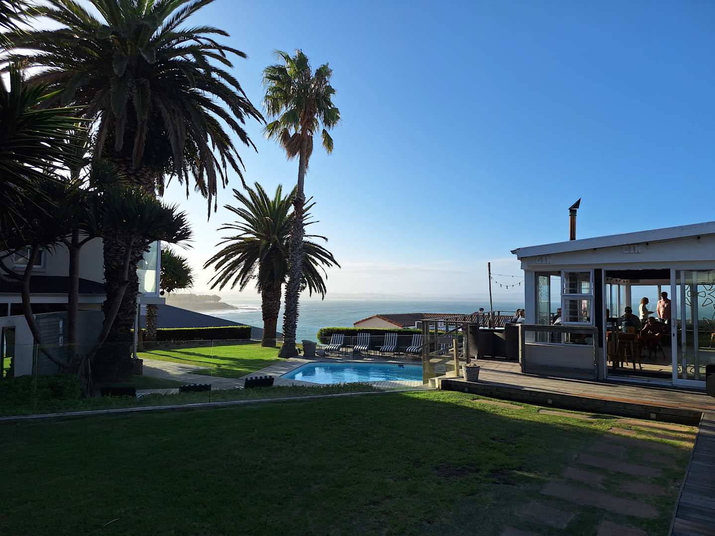 Blick auf Pool und Bucht