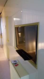 Glaswand mit eingelassenem TV
