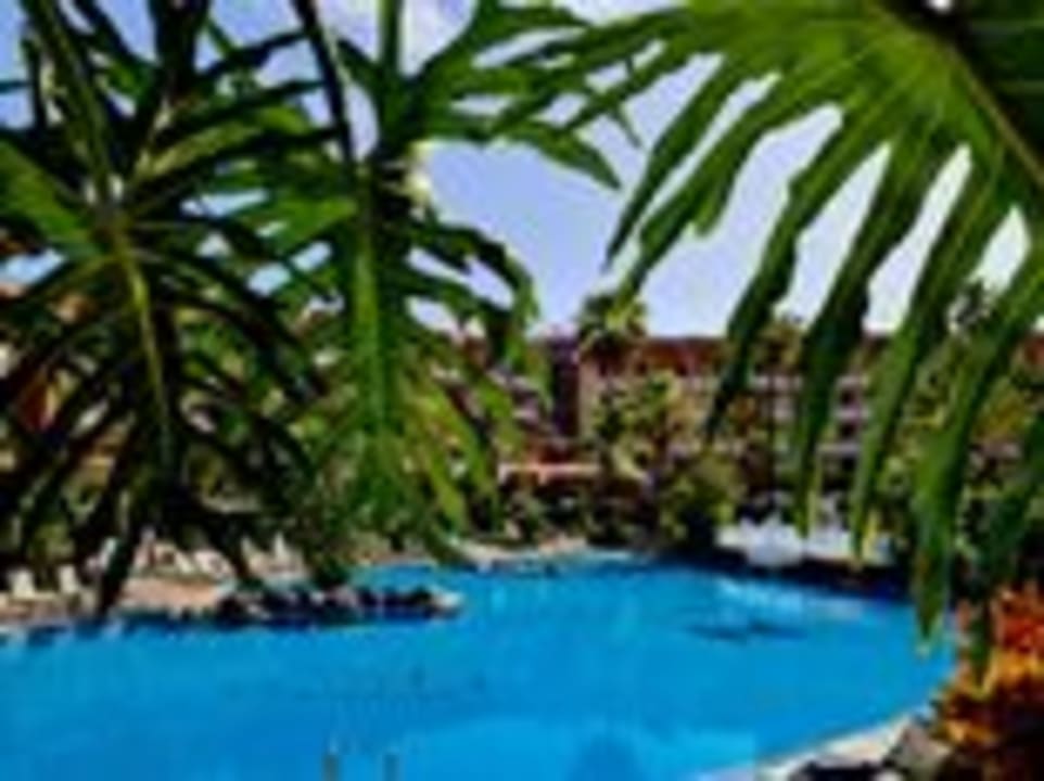 Blick zum Pool und Hotel