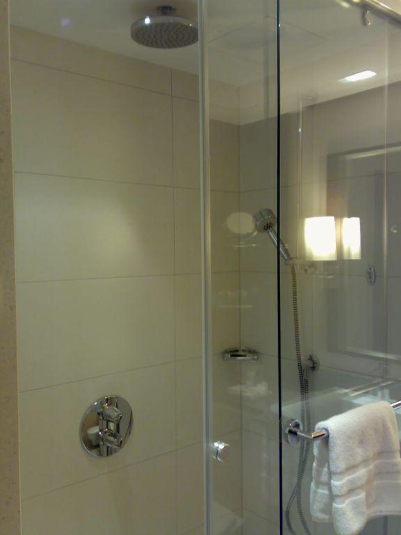 Begehbare Dusche...... mit Raindance Duschkopf an der Decke und Handdusche. Pflegeprodukte von Roger Gallet runden das Erlebnis ab.. :)