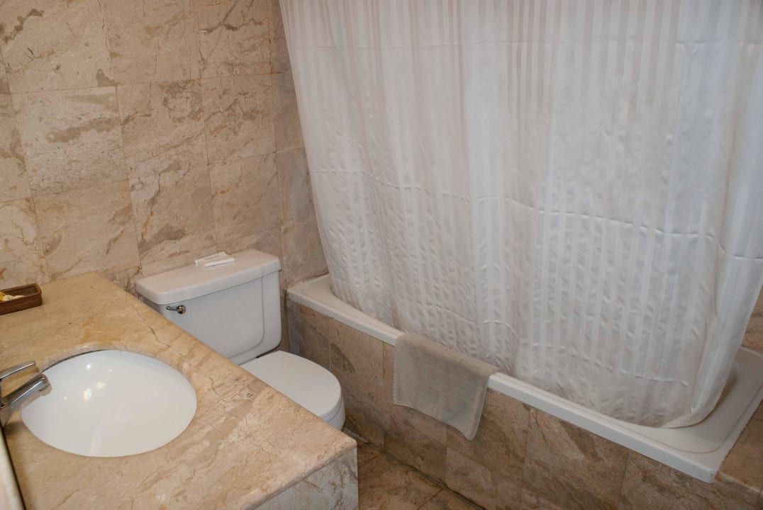 Bad/kein Außenfenster/Vorhang leicht schimmelig