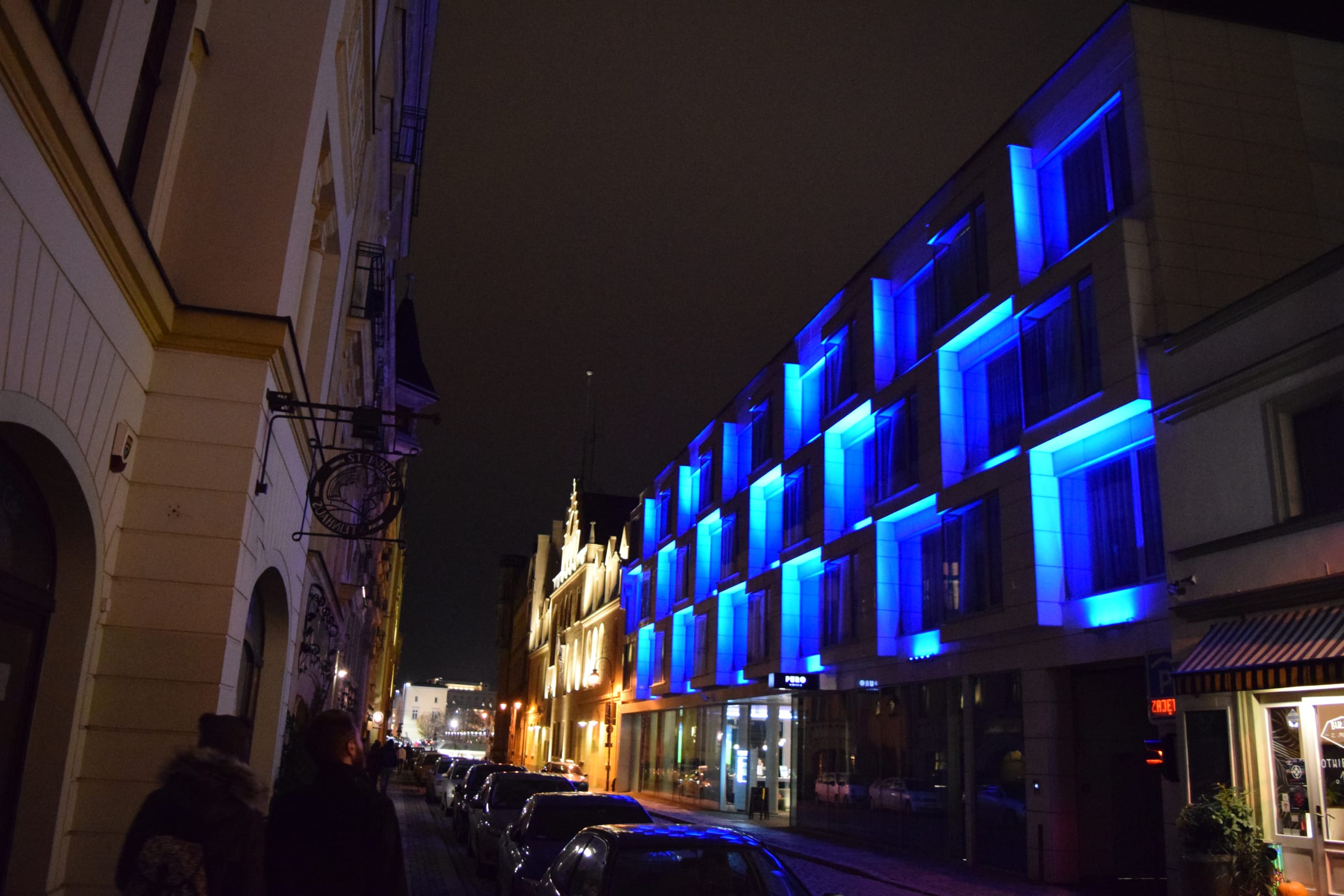 Außenansicht des Hotels bei Nacht...