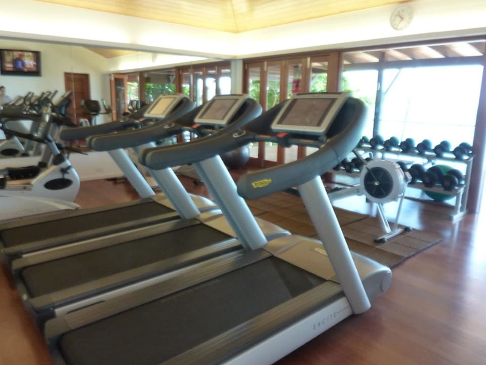 Fitness-Bereich vom Hotel mit Blick aufs Meer