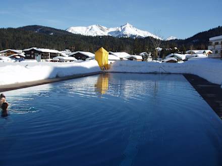 Der beheizte Außenpool im Winter