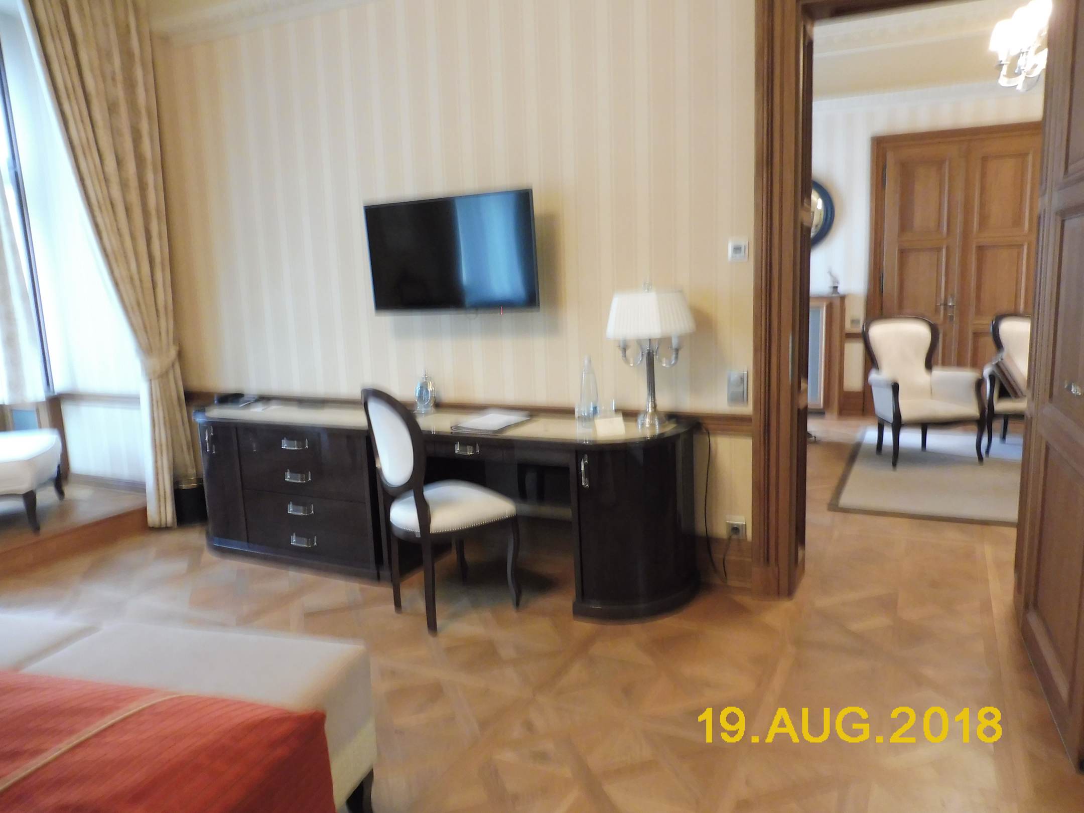 Schlafzimmer mit Schreibtisch und Fernseher