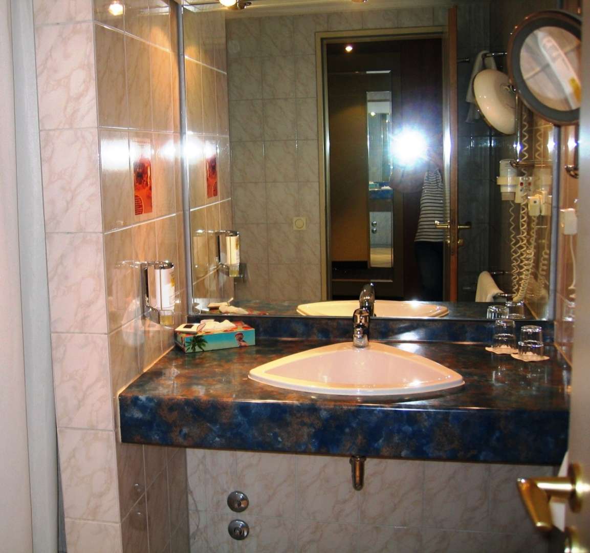 Großer Waschtisch mit Föhn, Kosmetikspiegel, Kleenex-Tücher