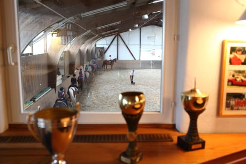 Blick über Reiterstube in die Reithalle Hotel & Reiterhof Konle