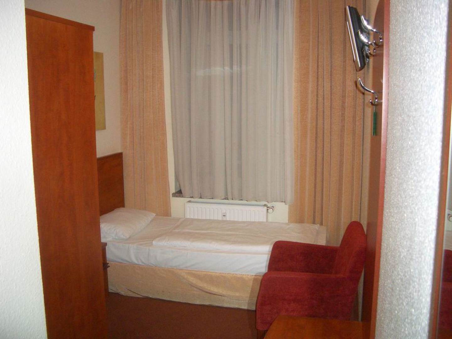 Blick in Zimmer 6. Der Fernseher ist wirklich zu hoch angebracht.
