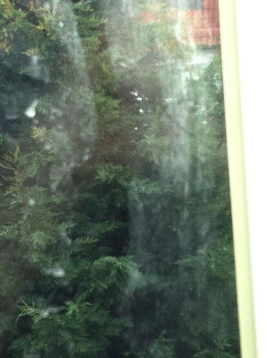 Wenn die Zimmer schon nicht sauber sind, warum sollten es dann die Fenster sein. Die weißen schleier auf dem Bild sind nicht von meiner Kamera sondern auf der Fensterscheibe.