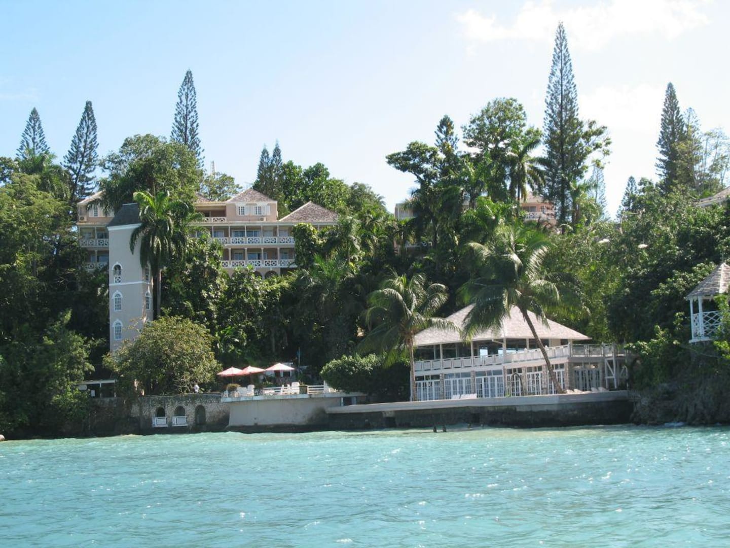 links im Bild ist der Außenfahrstuhl zum Spa zu sehen