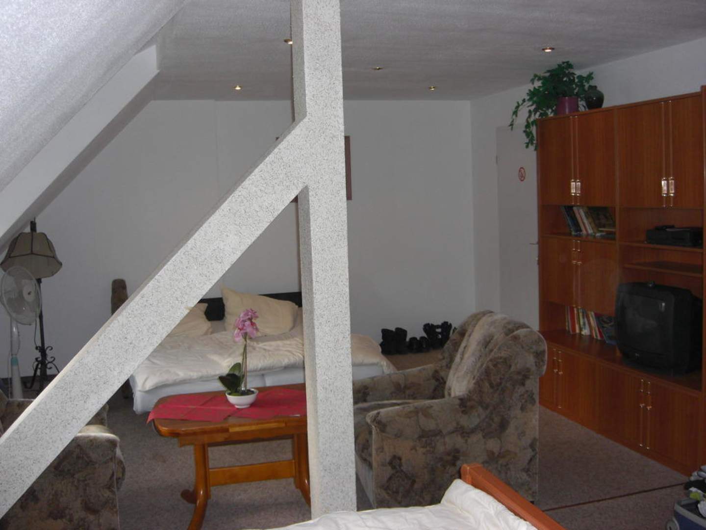Blick auf das zweite Doppelbett, das Zimmer ist trotz Mobiliar geräumig