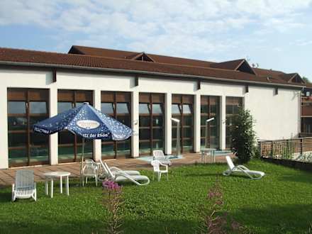 Diese Aufnahme der Außenansicht vom Schwimmbad des Hotels Rhön Residence habe ich am Morgen des 10. August 2010 gemacht.