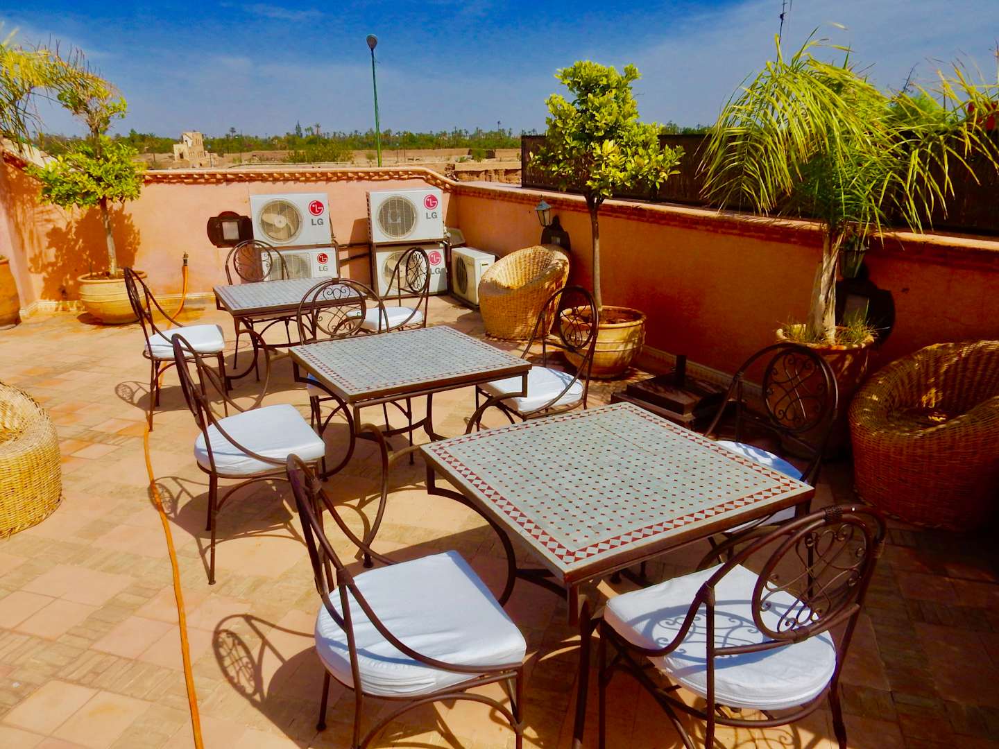 Dachterrasse, im Hintergrund die Stadtmauer der Medina