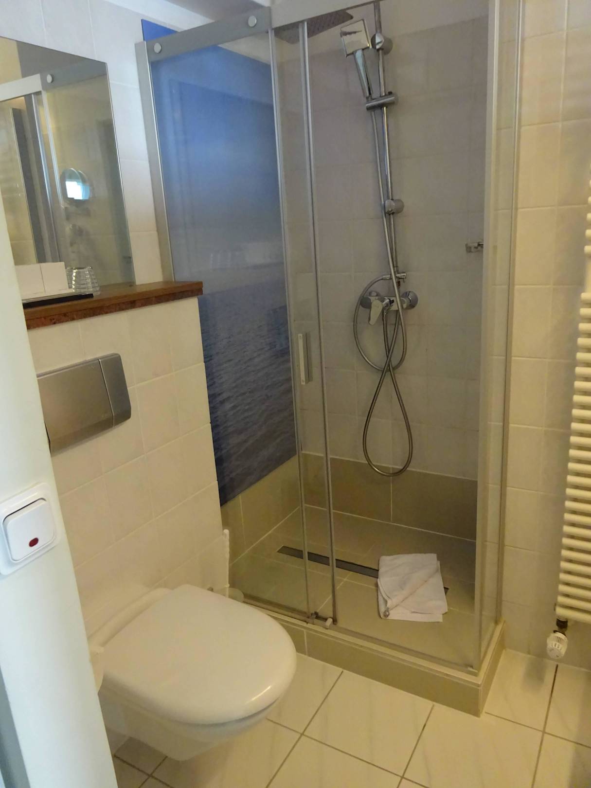 Sehr sauberes und angemessen großes Badezimmer mit Dusche