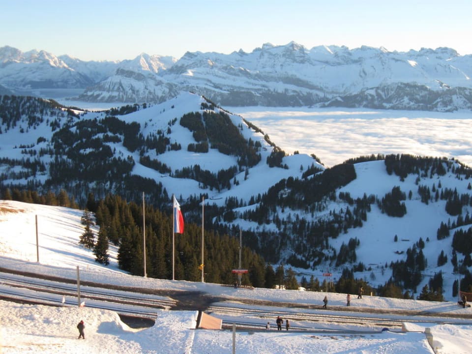 Bergpanorama,Nebelmeer und Bahnstation vom Zimmer aus !