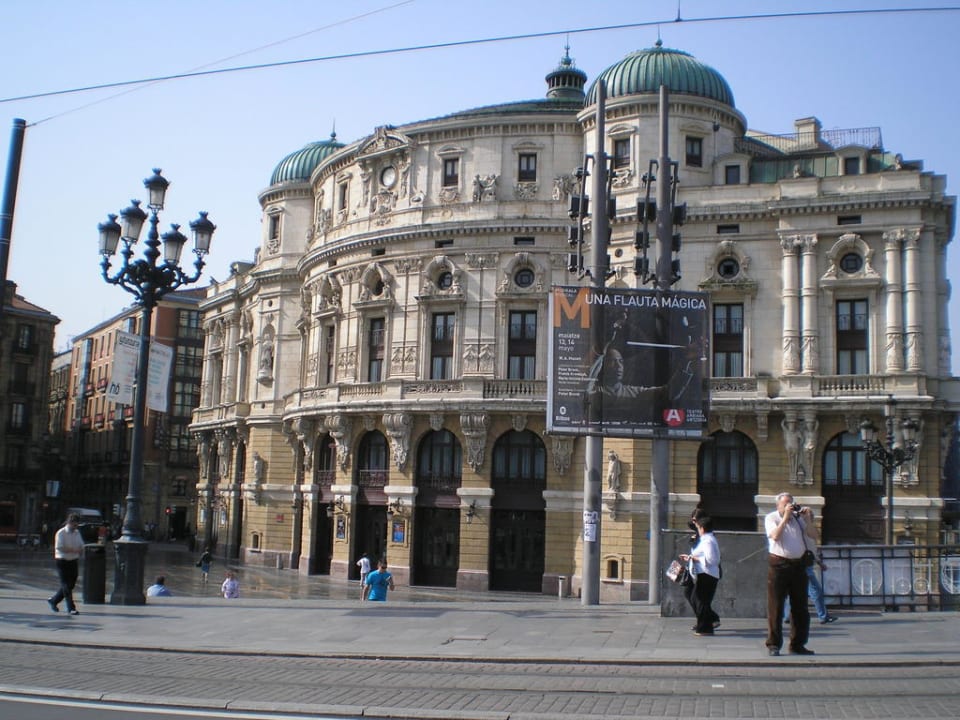 Vom Fenster aus fällt der Blick über den Fluss zum Arriaga-Theater
