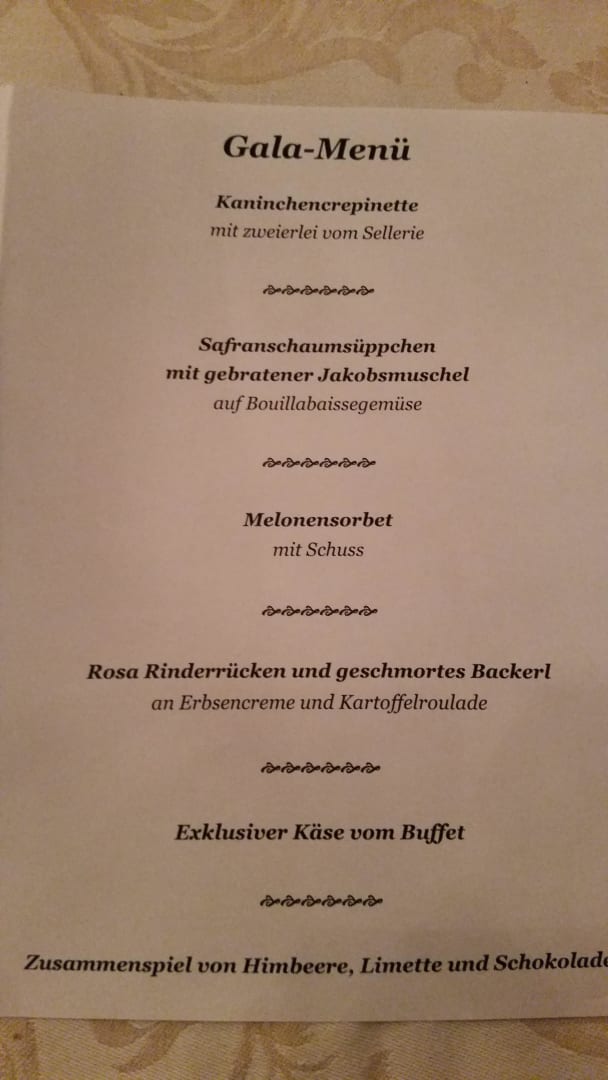 Ankündigung Gala-Menü