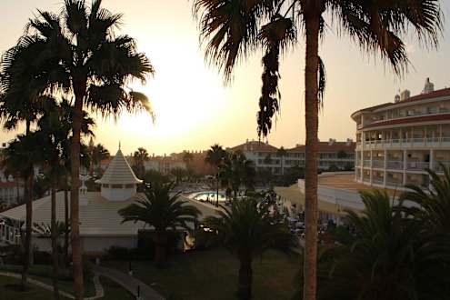 Blick vom Balkon des Zimmers Richtung Poolbereich