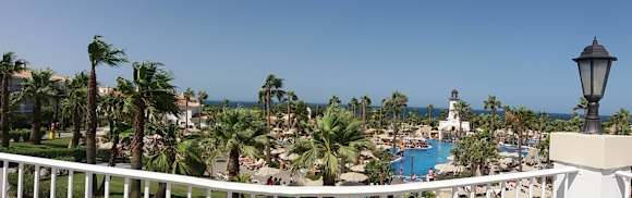 Überblick über die Poolanlage von einer der Terrassen Hotel Riu Chiclana