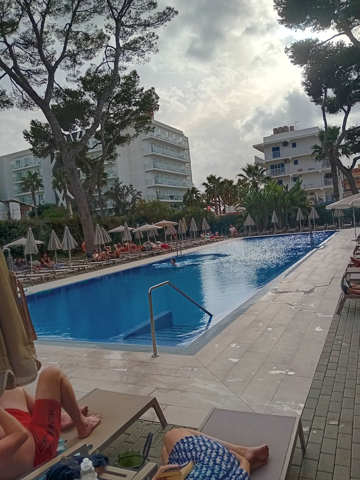 Blick vom Balkon auf den Pool.