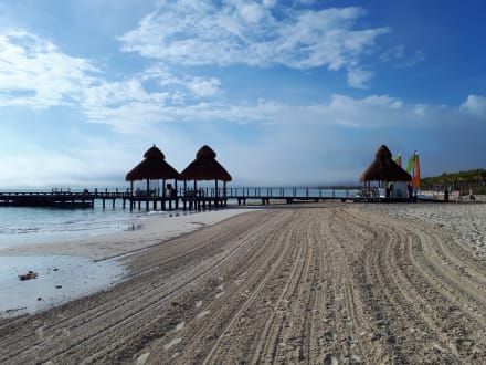 Täglich per Traktor gereinigter und geglätteter Strand (inkl. evtl .Säuberung der Algen)