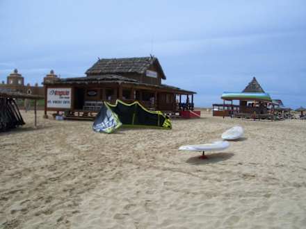 im Hintergrund Strandbar