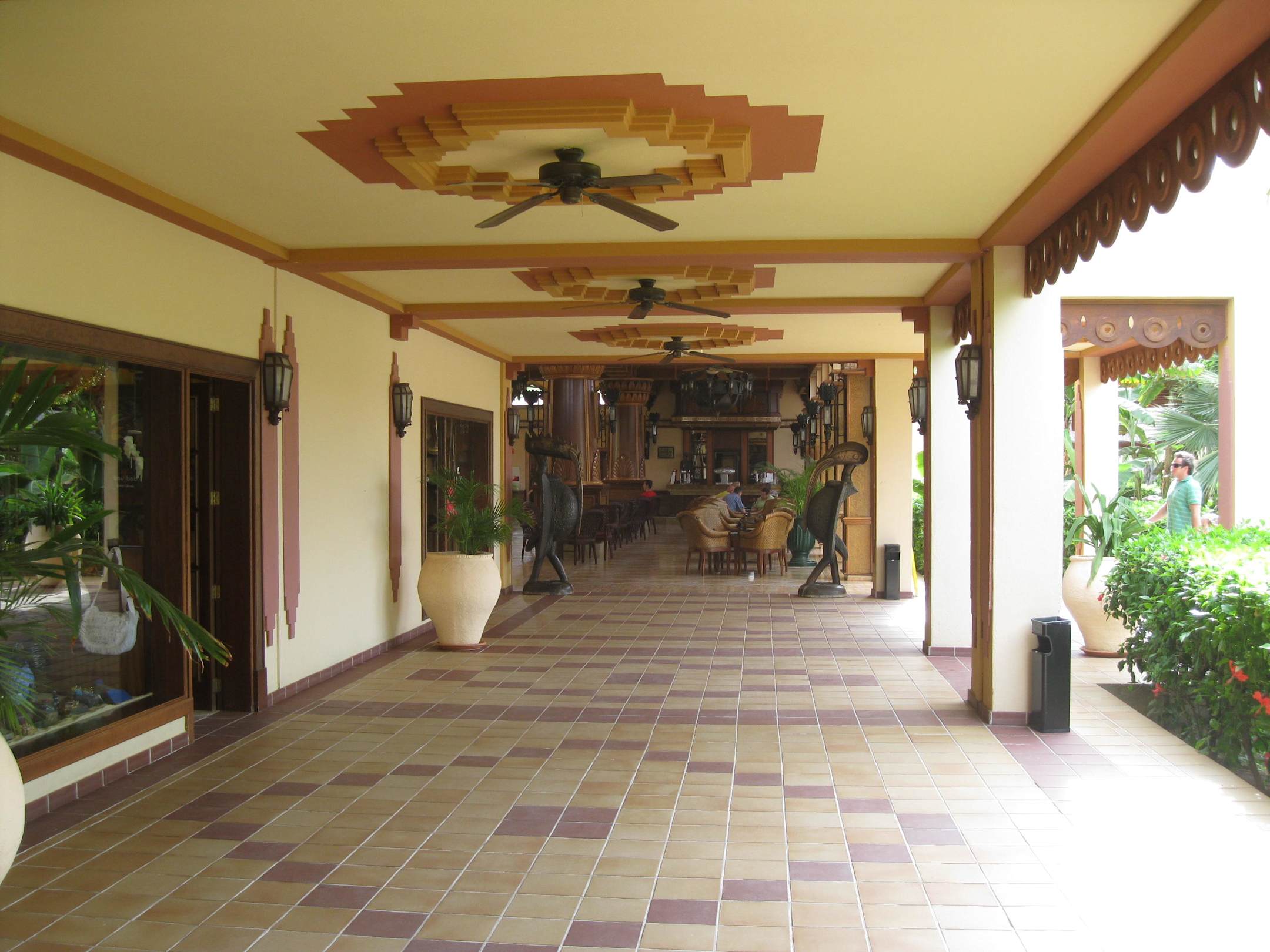 Vom Speisesaal zur Cocktailbar mit Geschäften.