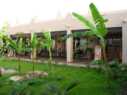 Frühstück unter BananenAußenbereich des Frühstücks-Restaurants - leider war es bewölkt.