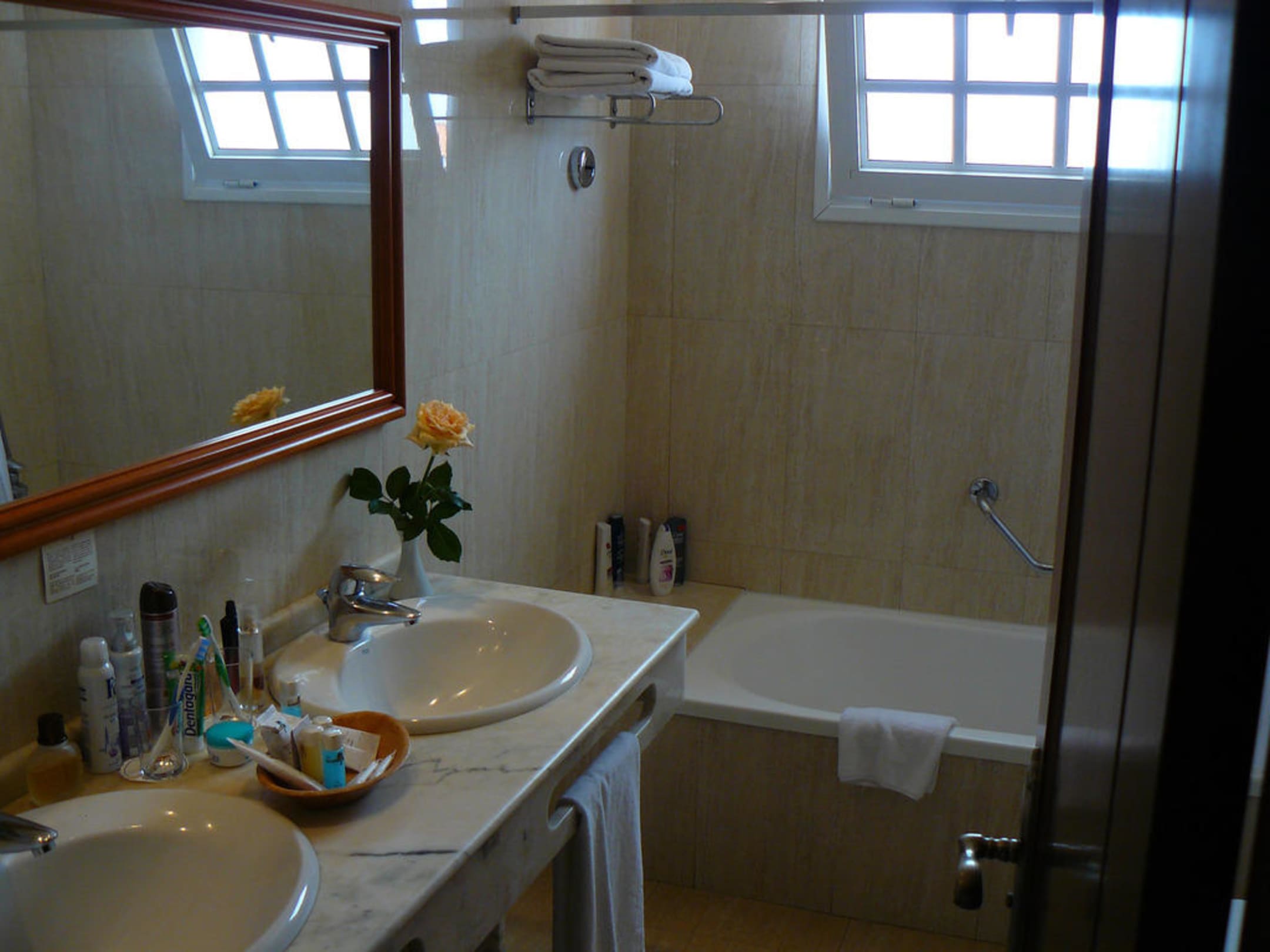 Bad und Waschbecken im Zimmer 335