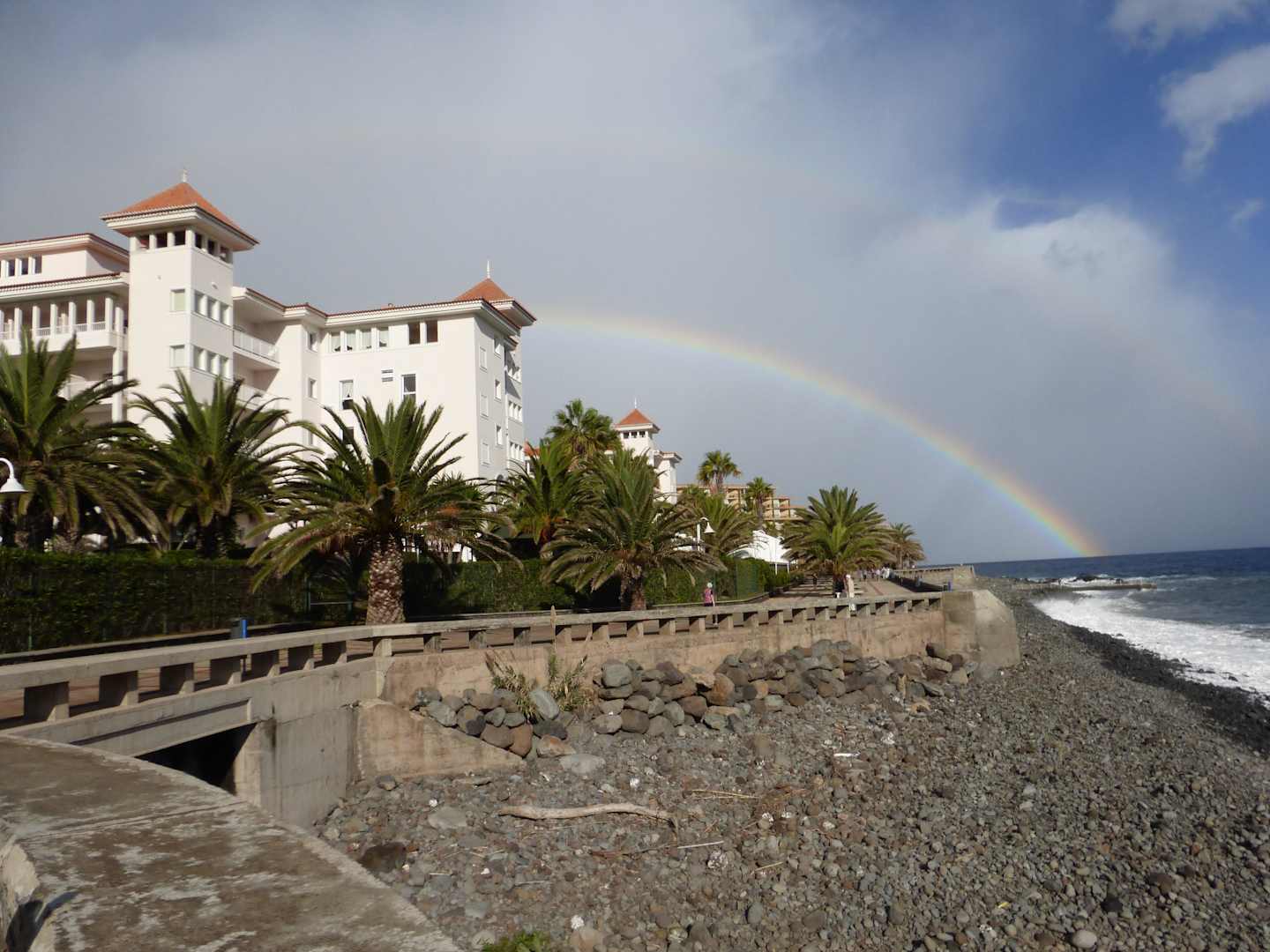 Hotel von Meersicht mit Regenbogen