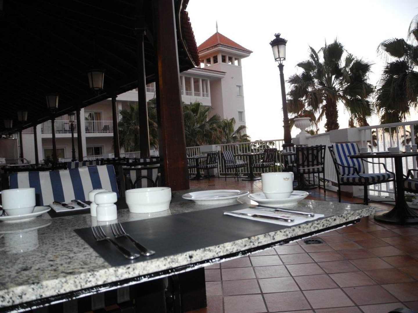 Die Terrasse erwartet die ersten Frühstücksgäste
