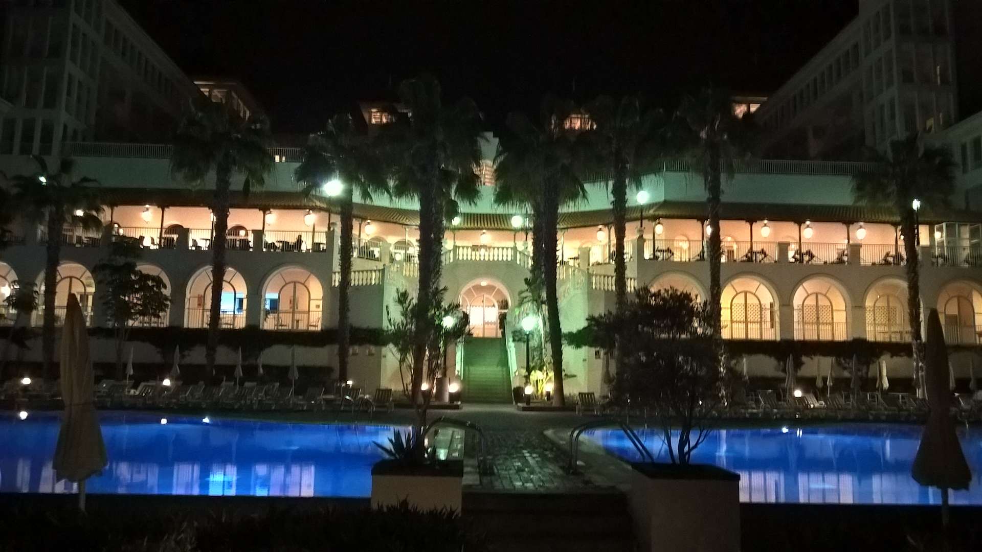 Hotelanlage bei Nacht