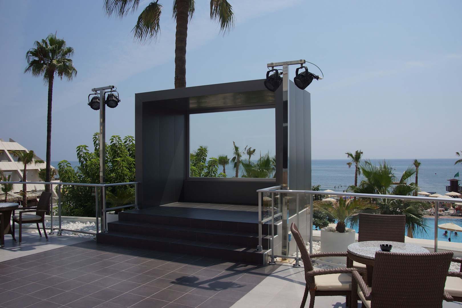 Dachterrasse mit Bühne für die Veranstaltungen